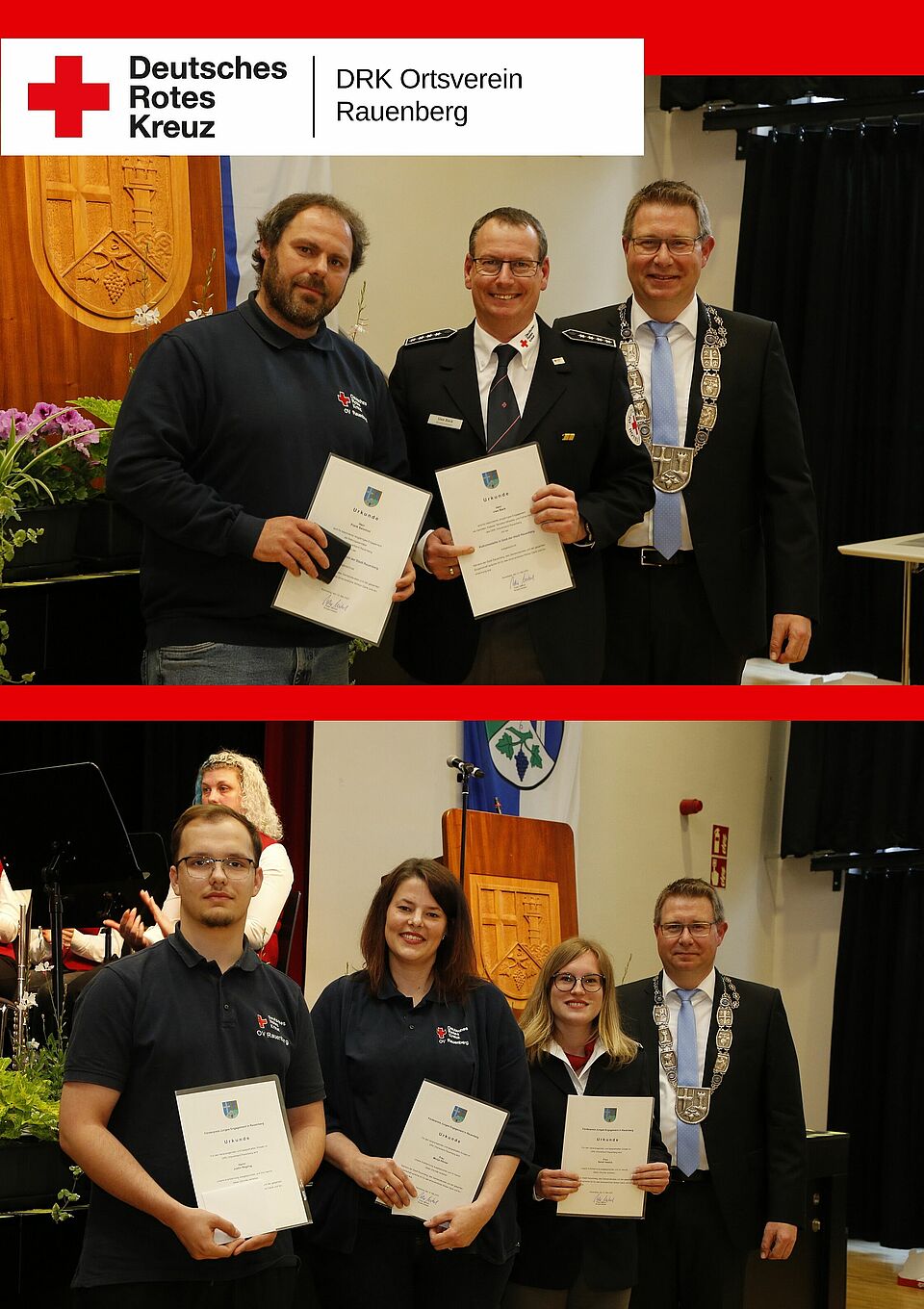 Für die langjährige aktive Zugehörigkeit zum DRK wurden Stefanie Back und Bernd Wagner die Kulturmedaille in Bronze verliehen. Christoph Vogel erhielt die Kulturmedaille in Silber, Uwe Back und Frank Salomon wurden mit der Kulturmedaille in Gold ausgezeichnet.