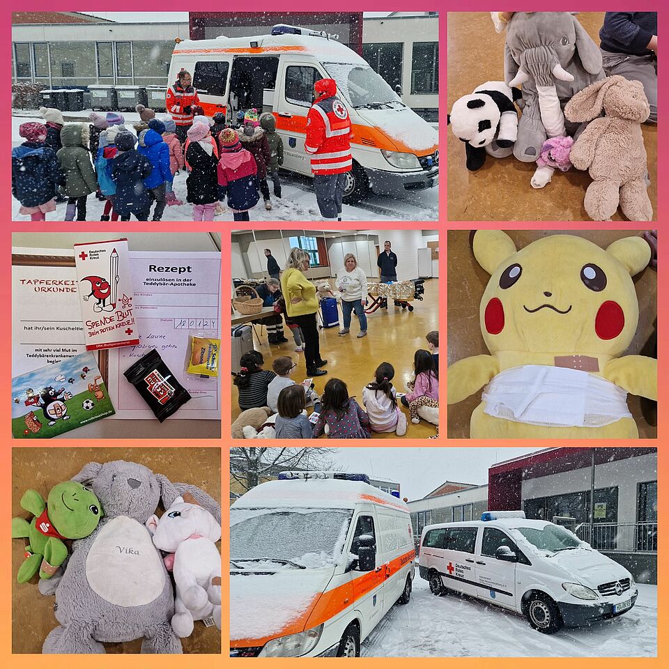 Zum Abschluss holten die Kinder sich bei der Teddybär Apotheke ein „Medikament“ in Form von Traubenzucker für ihre kleinen Patienten ab und erhielten noch eine Tapferkeitsurkunde und zur Weiterversorgung ein paar Pflaster dazu.