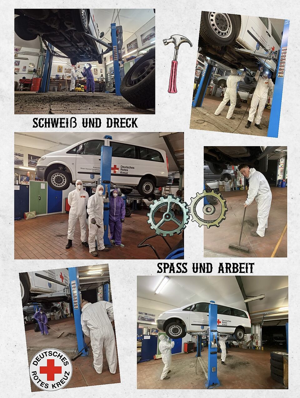 In der angemieteten Werkstatt wurde zuerst der alte Dreck mühselig per Hand abgeklopft und danach eine neue Versiegelung aufgetragen.