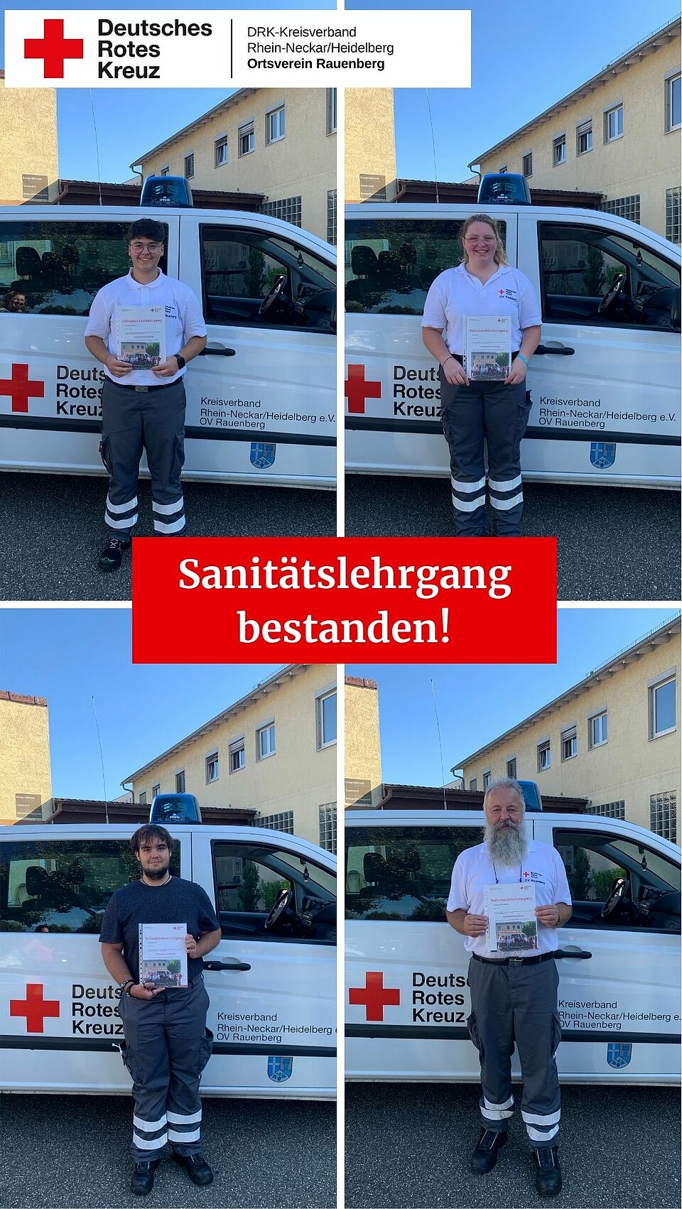 In 48 Unterrichtseinheiten wird den Teilnehmern das theoretische Wissen mit sehr vielen praxisnahen Fallbeispielen näher gebracht. Die vier haben insgesamt drei Prüfungen (Theorie, HLW Herz-Lungen-Wiederbelebung und ein praktisches Fallbeispiel) erfolgreich abgelegt. Wir sind sehr stolz und freuen uns auf die gemeinsamen Dienste mit Euch.