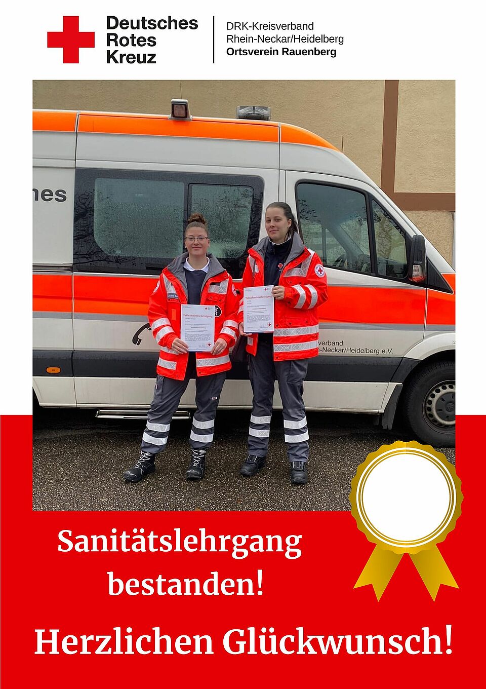 Wir gratulieren Lili Tordy und Lena-Maria Schimmel ganz herzlich! Sie sind nun vollwertige Einsatzkräfte im Sanitätsdienst und dürfen notfallmedizinische Versorgung leisten.