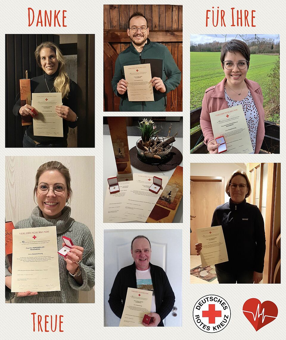 Für 10 Blutspenden wurde Susanne Ahl, Tristan Haas, Eva Hergemöller, Sandra Levicki, Heike Möbert, Dora Oestringer, Vanessa Pochodzalla, Alexander Sadler, Janine Salomon und Jürgen Steger, für 25 Blutspenden Nadine Brucker, Udo Greulich, Elke Jobst und Mike Sibler mit einer Urkunde und der Ehrennadel des DRK Blutspendendienstes Baden-Württemberg ausgezeichnet.