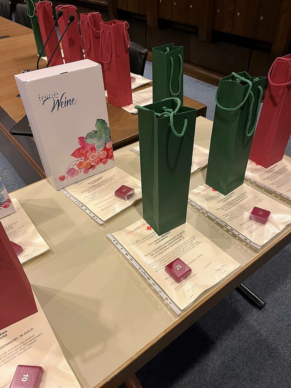 Bürgermeister Peter Seithel bedankte sich im Rahmen einer Feierstunde im Ratssaal des Rathauses bei den anwesenden Spendern: „Sie stehen am Anfang der Kette der Blutversorgung und sind damit zugleich das wichtigste Glied darin. Sie sind damit Lebensretter der unspektakulären Art, sie helfen, ohne den Verletzten jemals zu sehen oder gar zu kennen. Es ist mir ein Herzensanliegen ihr Engagement zu würdigen und ihnen herzlich zu danken!“